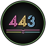 黒背景に光が浮かぶようなネオン表現で“443”をデザイン。ポップさとクールさを両立させた、印象に残るアイコンスタイル。